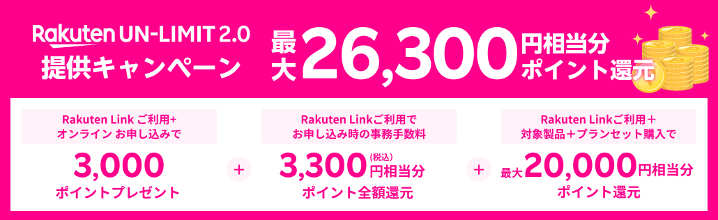 楽天の新しい通信会社による Rakuten UN-LIMIT がキャンペーン中です。