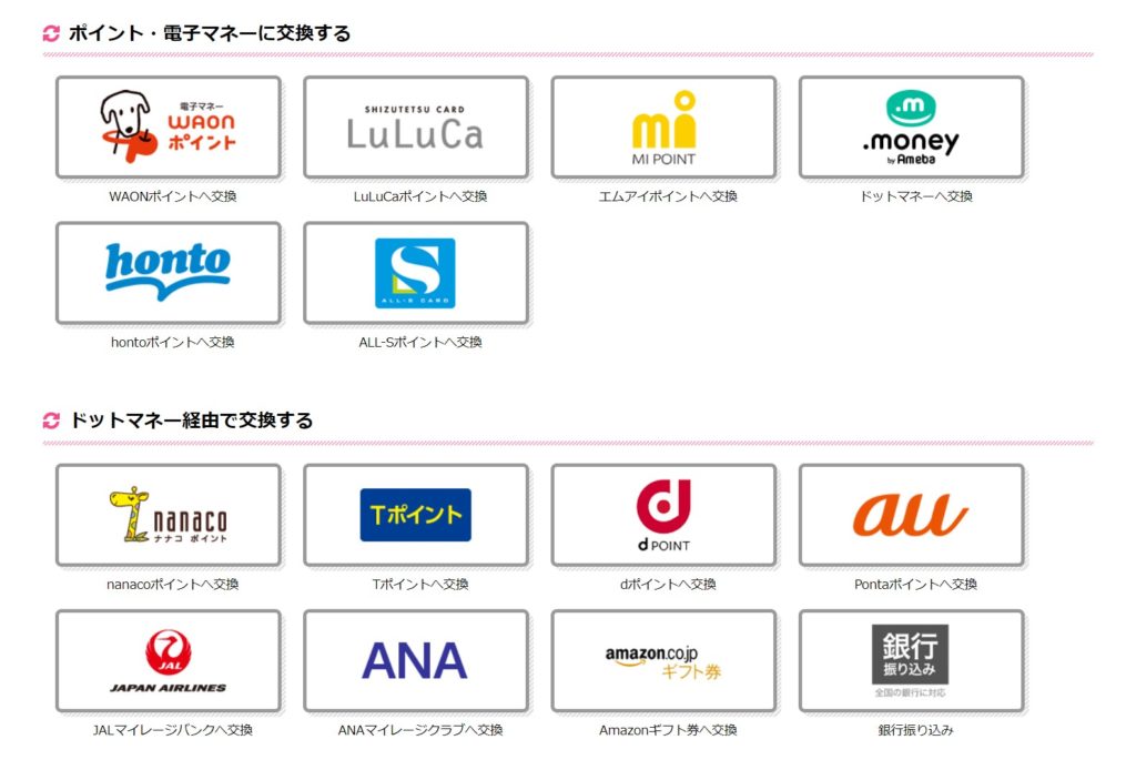 TLCポイントは、付与された後、dポイント、pontaポイント、amazonギフト券など、幅広く交換可能です。