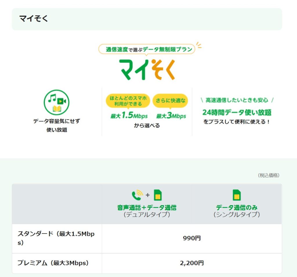 こちらは速度が抑えられている代わりに、無制限で利用できます。